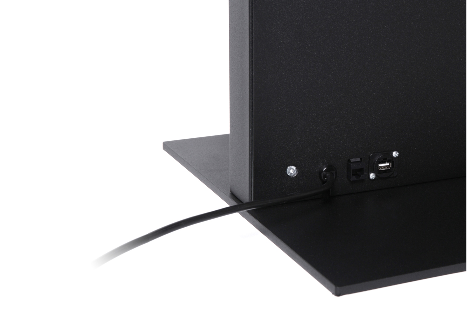 Für eine stabile Standfestigkeit ist die Infostele mit einer massiven Sockelbasis ausgestattet, die aus einer 8 mm starken Stahlplatte gefertigt ist. Diese Basis kann optional mit Schrauben am Boden befestigt werden, um zusätzliche Sicherheit zu gewährleisten.