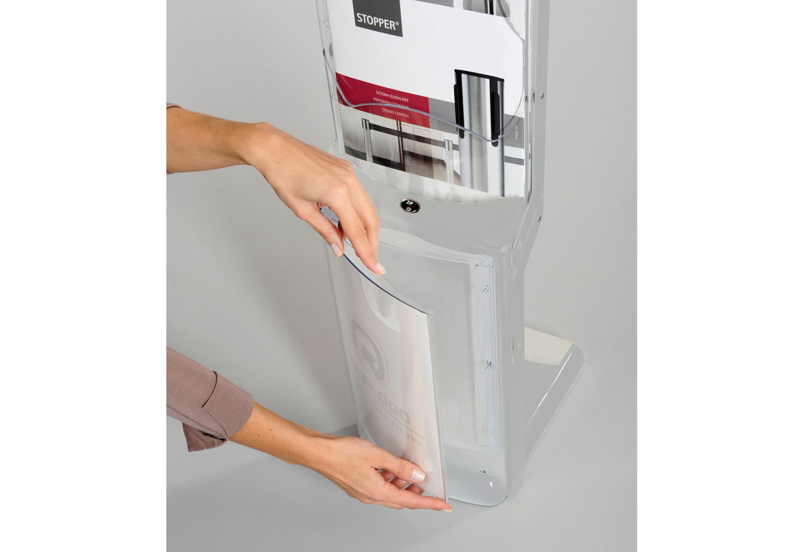 Der Real ZIP Prospektständer ist unser Bestseller! Der auf ein kleines, transportfähiges Maß zusammenfaltbare Prospektständer besitzt vier DIN A4 Polycarbonat Spitzgusstaschen mit Einzelblattkippschutz. Durch die patentierte Ziamonika-Technik ist er im Handumdrehen aufgebaut. Mit dem Zubehör „Zip Divider“ können Sie die einzelnen A4 Fächer in jeweils zwei A6 Fächer aufteilen. Stufenförmige Staffelung und ergonomisch geformte Seitenstreben aus silbereloxiertem Aluminium gewährleisten perfekte Entnahme von Prospektmaterial. Als Option kann der Real ZIP auch mit einer vormontierten DIN A4 Pixquick Tasche auf dem Frontpanel bestellt werden. Damit personalisieren Sie Ihren Real ZIP schnell und immer passend zum Anlass. Das clevere Pixquick Design präsentiert ihren Druck ohne Rahmen und staubgeschützt. Für den praktischen Transport des Real ZIP Prospektständer steht entweder eine Transporttasche mit Tragegriffen oder ein Transport Trolley zur Verfügung.