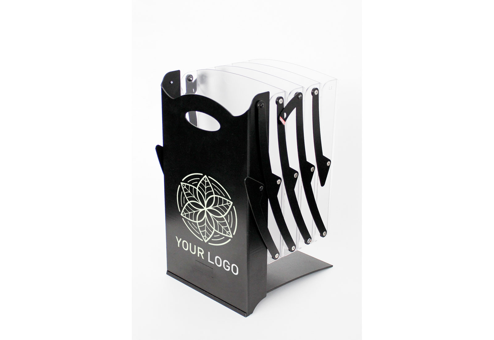 Die Real ZIP-Serie Black wurde für Kunden entwickelt, die einen Prospektständer in Top-Qualität, aber zum einem günstigen Preis benötigen. Wie der klassische Real ZIP auch, kann der Real Zip Black auf ein kleines Maß zusammen gefaltet und so in einer praktischen Transporttasche transportiert werden. Die komplett aus lackiertem Metall gefertigte Bodenplatte gibt dem Prospektständer die nötige Stabilität. Durch den im System integrierten Tragegriff kann der Prospektständer zudem leicht gehandelt werden. Die lackierte Frontfläche lässt sich auf Wunsch mit einem individuellen Logoaufdruck versehen. Ab einer Auflage von 36 Systemen kann der Prospektständer auch in verschiedenen RAL Farben lackiert werden.