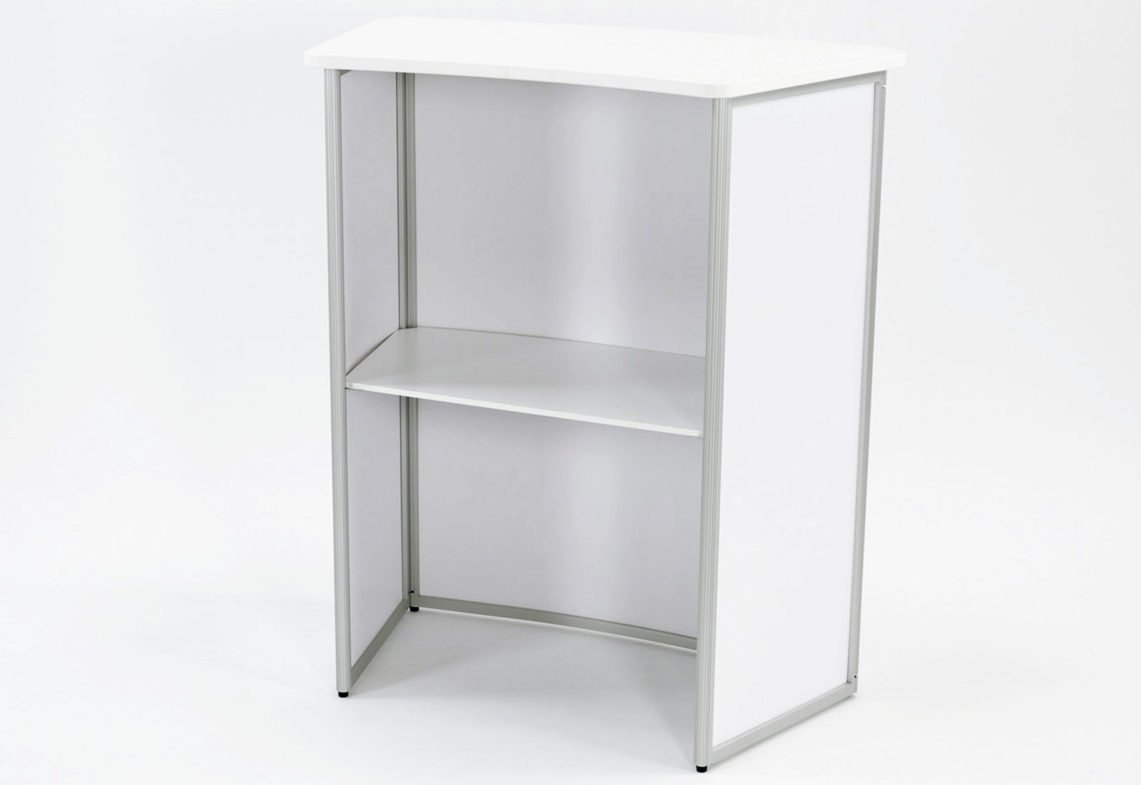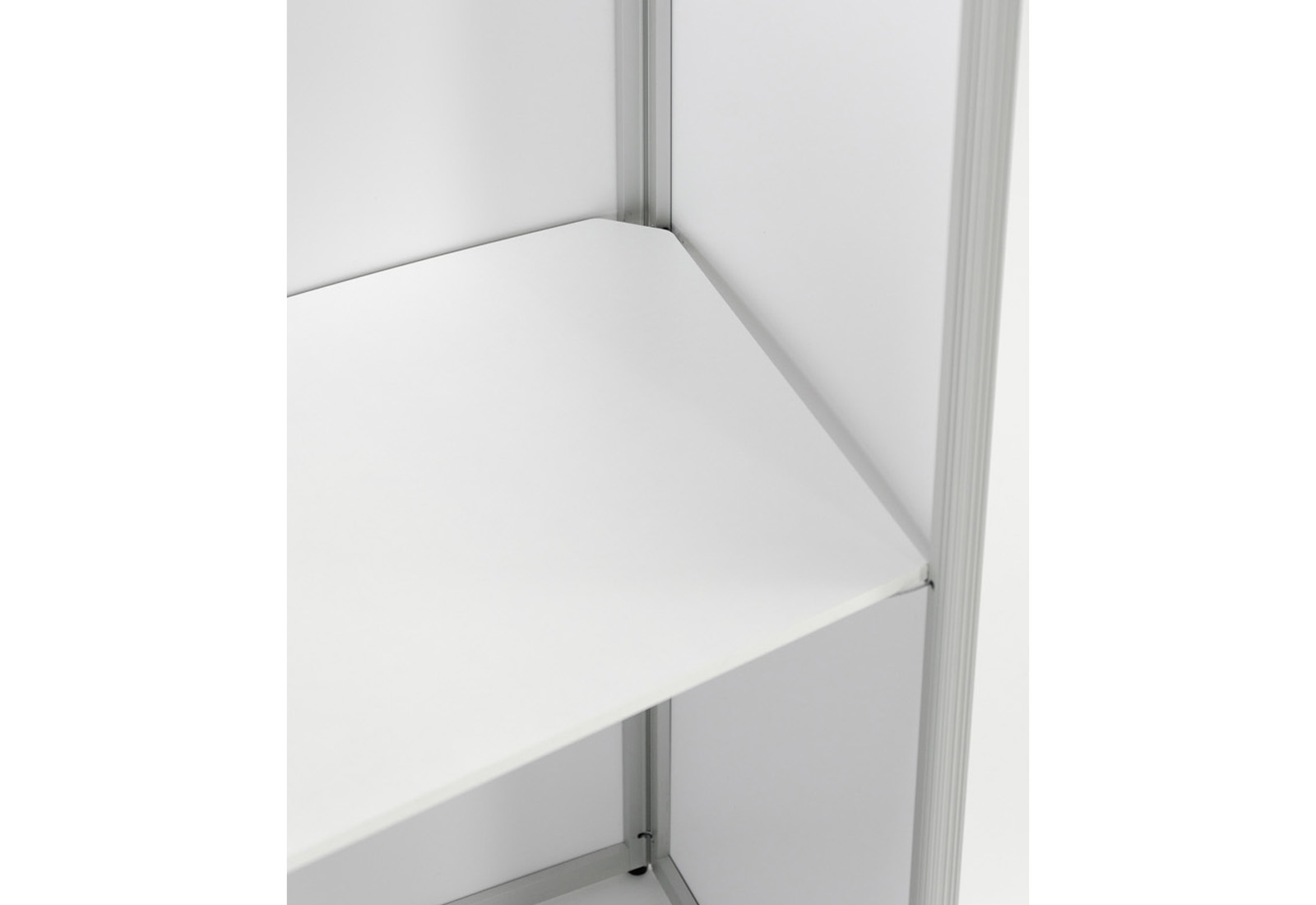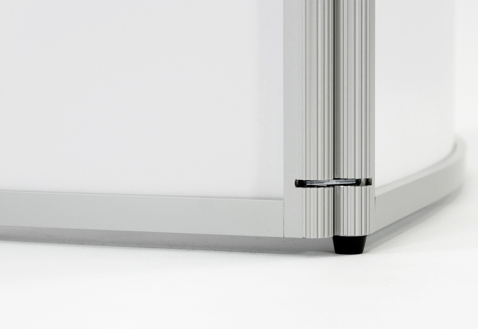 Ganz neu in unserem Theken-Sortiment ist die besonders kostengünstige Theke „Easy“. Der Produktname hält was er verspricht. Einfach auseinander klappen, Einlegeboden einlegen, Thekenplatte auflegen und die stabile Messetheke ist einsatzbereit. Sie ist ideal für alle Bereiche wo schneller Einsatz gefragt ist. Das System wird fertig montiert geliefert und ist mit wenigen Handgriffen einsatzfähig. Auf Wunsch kann die Theke natürlich mit einem individuellen Grafikdruck versehen werden. Eine Transporttasche kann zusätzlich bestellt werden.