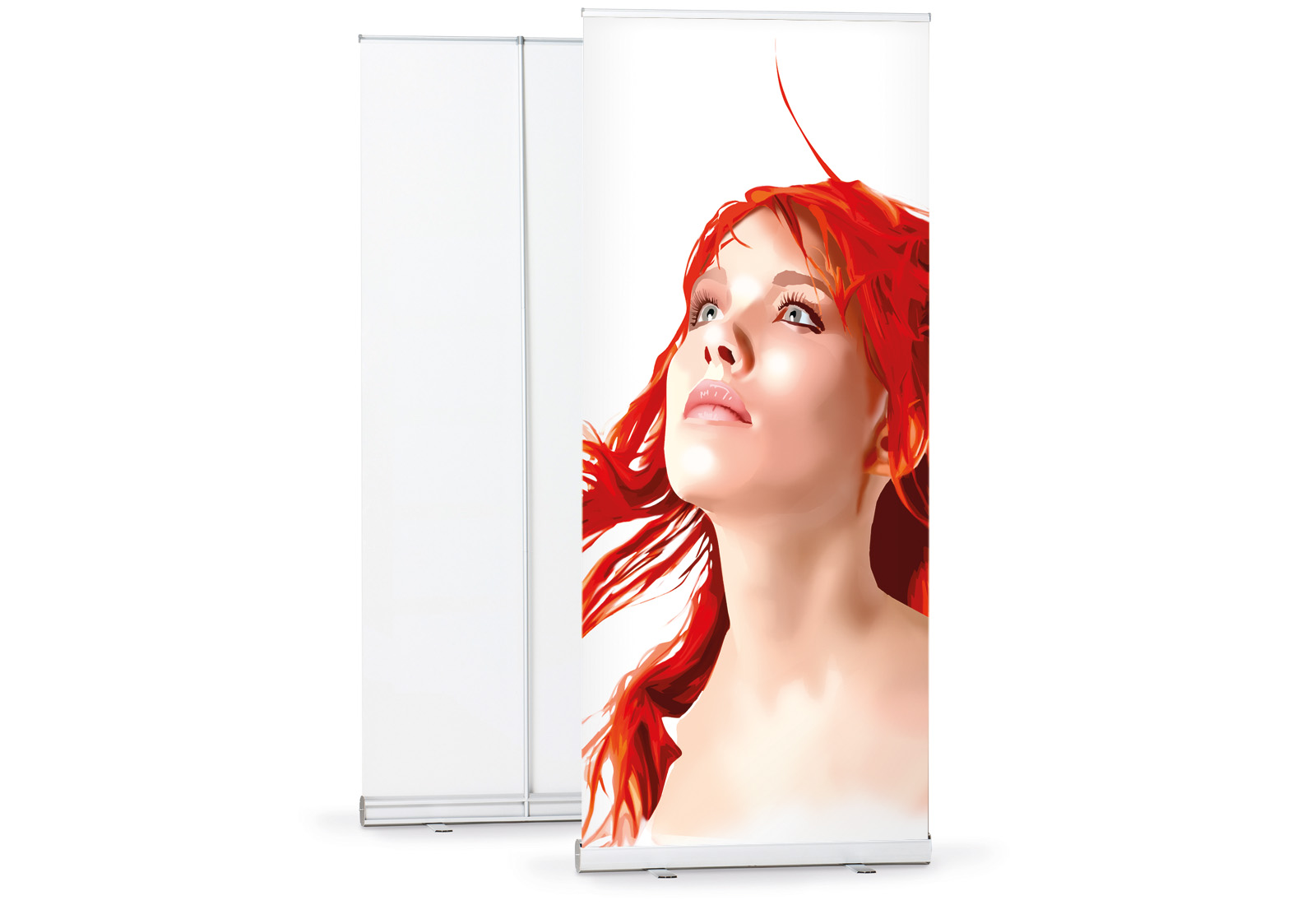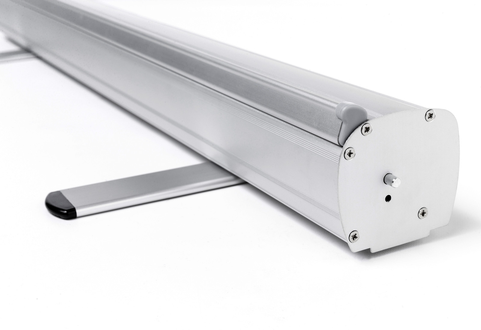 Das Economy RollUp ist einer der MARTINCOLOR-Bestseller. Es handelt sich um ein aus Aluminium gefertigtes System, mit zwei herausdrehbaren Standfüßen und einer Transporttasche. Die Mechanik eines RollUp Systems ist einfach zu erklären. Die im Standfuß des Systems verborgene Grafik lässt sich durch einfaches "Herausziehen" präsentieren. Dieser Vorgang dauert nur wenige Sekunden – und schon ist die Werbebotschaft sichtbar! Der Grafikdruck erfolgt auf B1 zertifiziertem Bannersoft-Material 720 dpi.