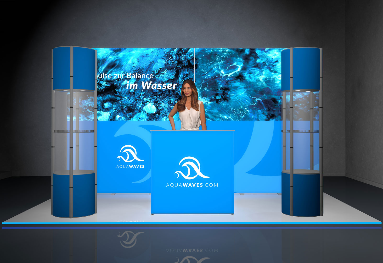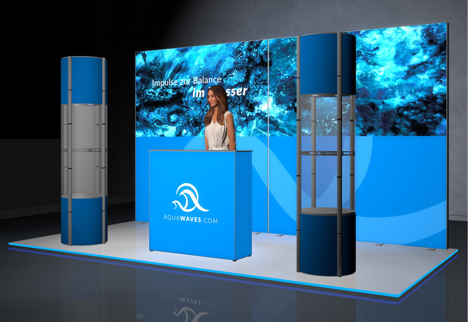 Dieser LED-Messestand ist konzipiert für 4 x 2 m Standflächen. Das ALU LightUp Leuchtwandsystem ist perfekt für Selbstaufbauer geeignet.