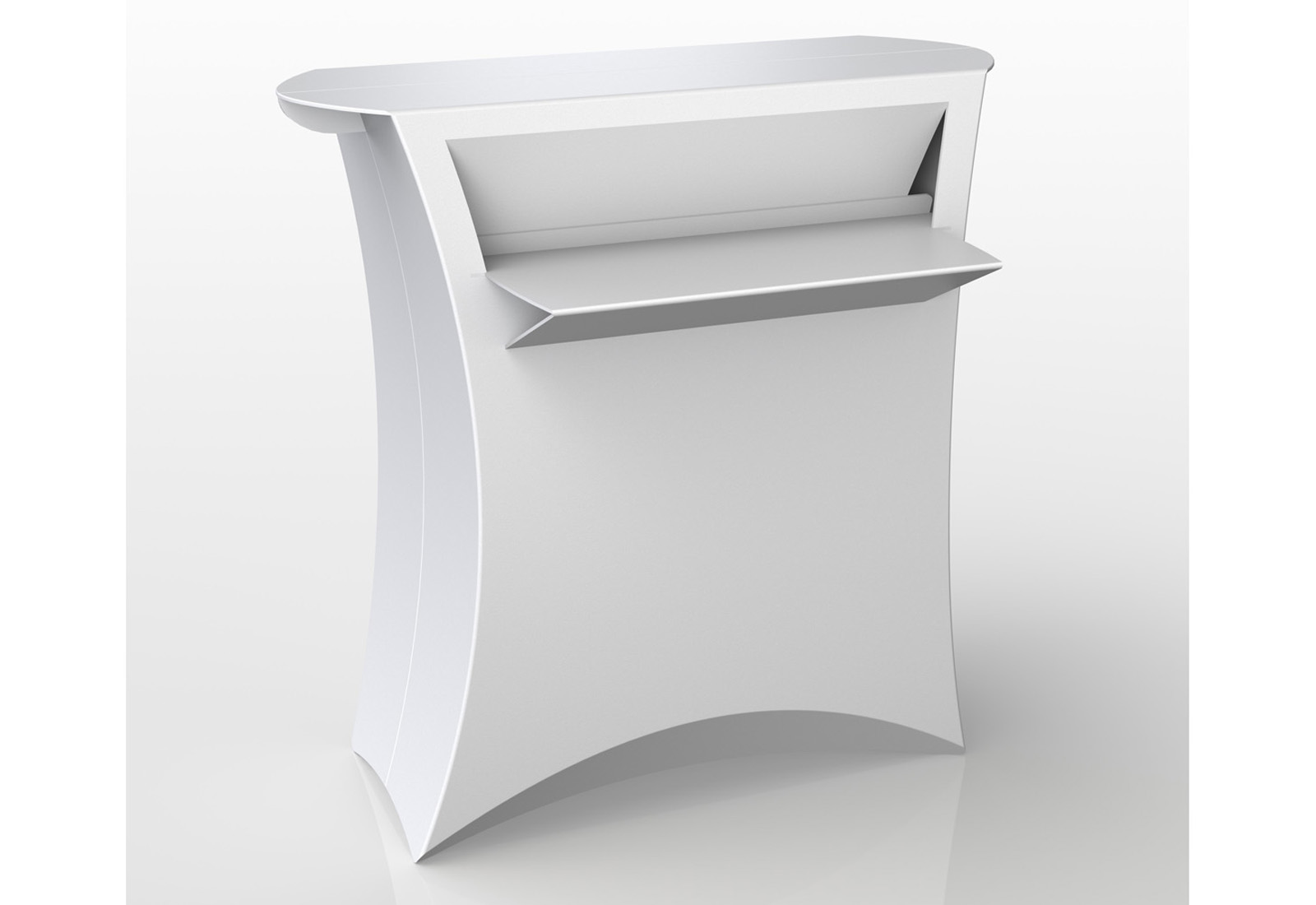 Ganz neu in der Flux Produktfamilie ist der Flux Counter. Die faltbare Theke wird aus wetterfestem Polypropylen gefertigt und plan geliefert. Dank des innovativen Designs und mithilfe vorgestanzter Linien lässt sich in Sekunden ein völlig stabiler, robuster und wetterfester Counter ohne Werkzeug zusammenfalten. Das verwendete Material ist hochwertiger Polypropylen und ist äußerst pflegeleicht. Futuristisch und ergonomisch gebaut bietet der Flux Counter höchste Funktionalität und ist ideal geeignet für die Verwendung bei Messen oder Veranstaltungen. So schnell wie der Counter auch aufgebaut ist, lässt er sich auch wieder in seine Ursprungsform zurückführen und ist zusammengefaltet nur 1-2 cm hoch - ideal für einen einfachen Transport oder Lagerung. Der Flux Counter wird in weiß gefertigt, kann aber selbstverständlich mit Ihrem individuellem Design oder Logo gebrandet werden.
