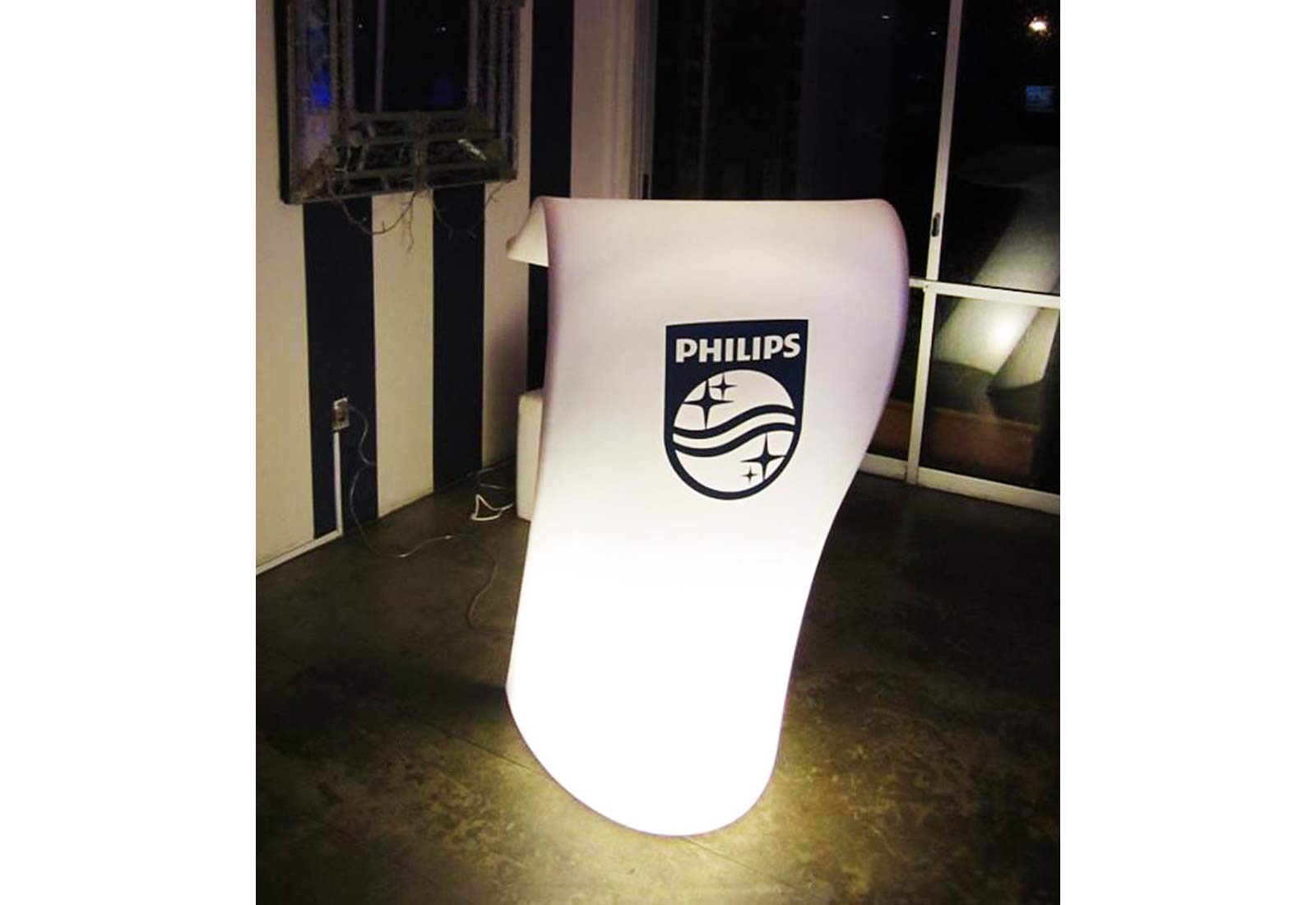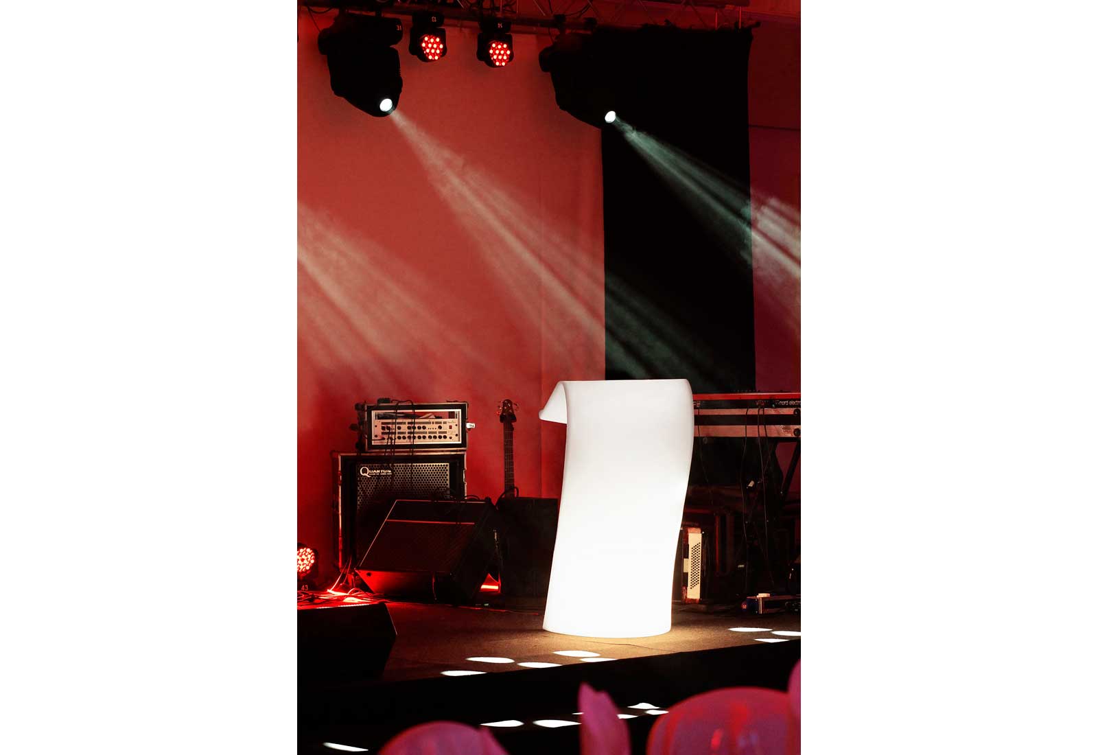 Neu in unserem Leuchtmöbelprogramm ist das SWISH Pult. Es ist ein Eyecatcher auf jeder Eventbühne und kann mit einem Logo aus Klebebuchstaben versehen werden.