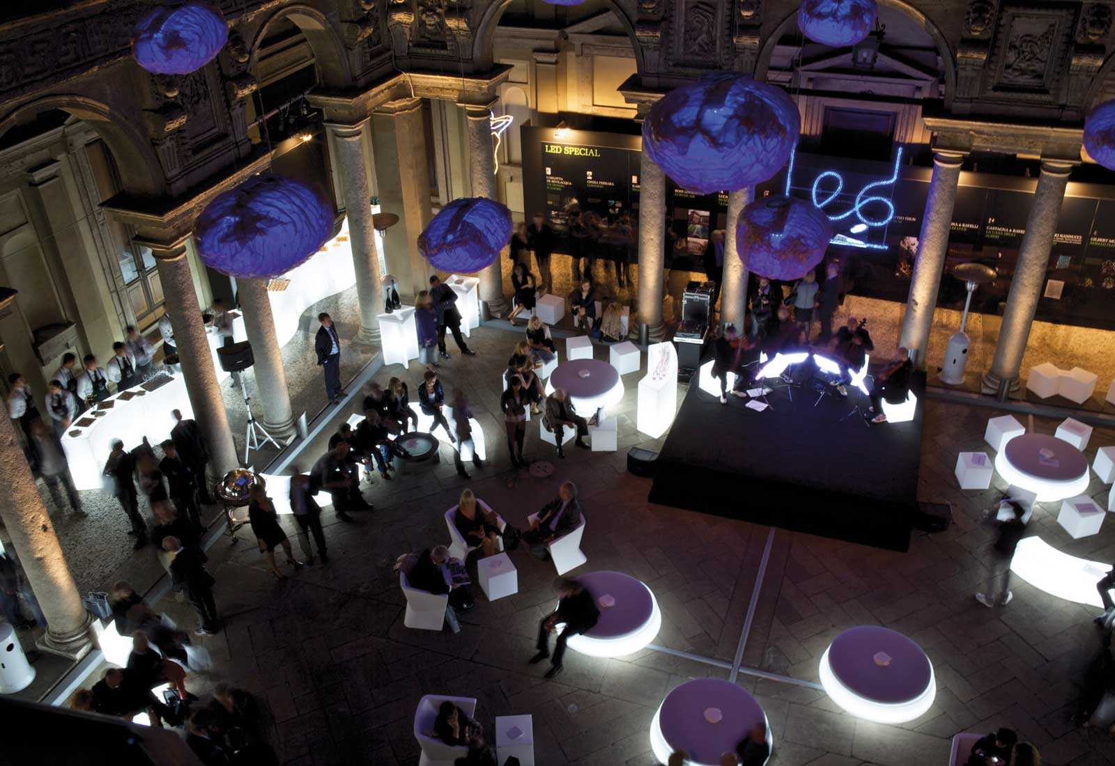 Das Designersofa Giò Pouf bereichert die Sitzmöglichkeiten auf Ihrer Messe, Ihrem Event, Ausstellung oder Veranstaltung. Es bietet höchsten Sitzkomfort und ist "rundherum" nutzbar. Durch den beleuchteten Korpus aus wetterfestem Polyethylen fällt das Leuchtsofa Giò Pouf besonders ins Auge. Die leuchtende Sitzinsel Giò Pouf ist natürlich auch für Draußen geeignet. Nur bei Regen empfehlen wir, das graue Sitzkissen herunterzunehmen. Der Giò Pou ist 53 cm hoch und besitzt einen Durchmesser von Ø 145 cm.