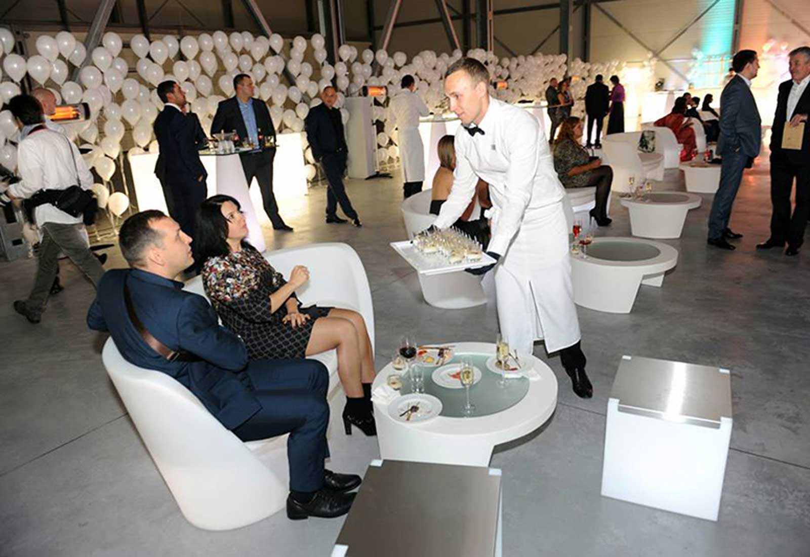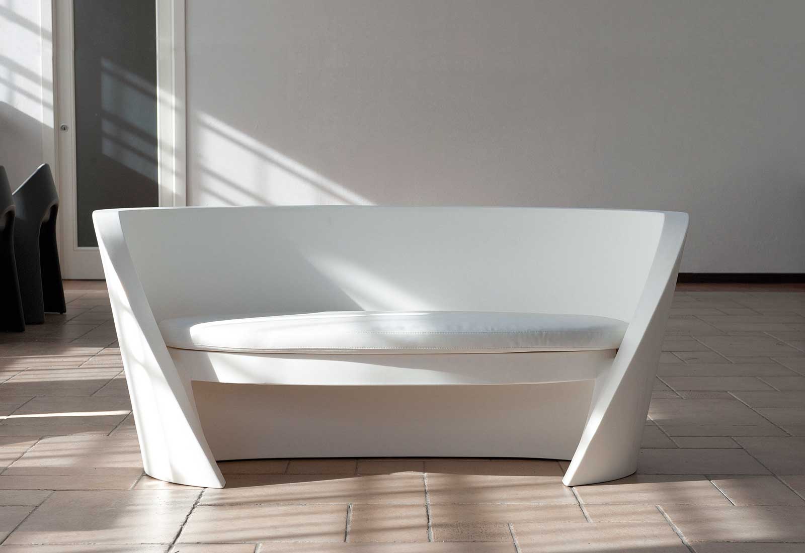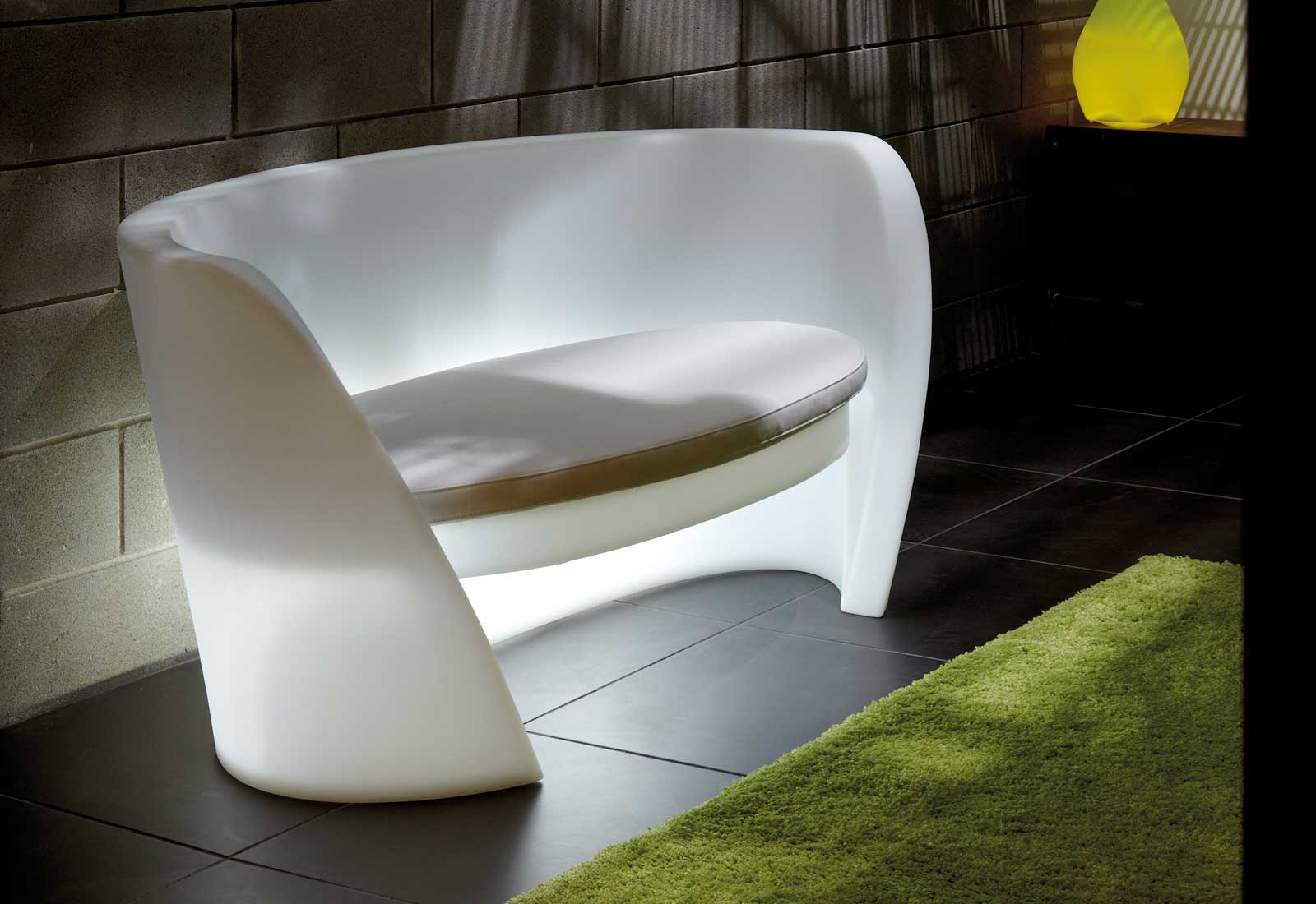 Ganz neu und ein Eyechatcher auf jeder Veranstaltung, Messe oder im In- und Outdoor Launchbereich ist das dekorative, leuchtende Sofa RAP. Das Designer-Sofa wurde von Karim Rashid kreiert und bietet bequem Platz für zwei Personen. Die Sitzhöhe beträgt 36 cm, das Gewicht 35 kg. Das Sofa RAP ist neben der beleuchteten Version auch in lackierten Sonderfarben erhältlich. Das leuchtende Sofa RAP besteht aus 100% recyclebarem Polyethylen, ist wetterfest und mit zwei Fassungen für E27 Energiesparlampen versehen. Die Leuchtmittel sind nicht im Lieferumfang enthalten. Die Indoor-Version verfügt über ein weißes Kabel, die Outdoor-Version über ein schwarzes Kabel. Auf Wunsch kann zu dem Leuchtsofa RAP auch eine weiche Sitzablage aus Soft-Polyurethane, wahlweise in den Farben weiß, grau oder dunkelgrau, bestellt werden.