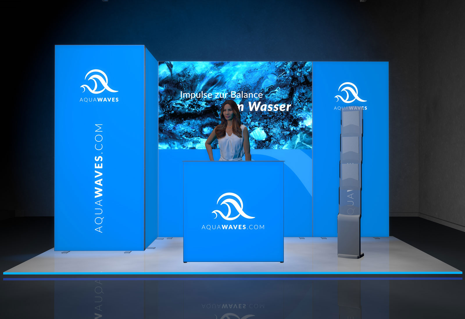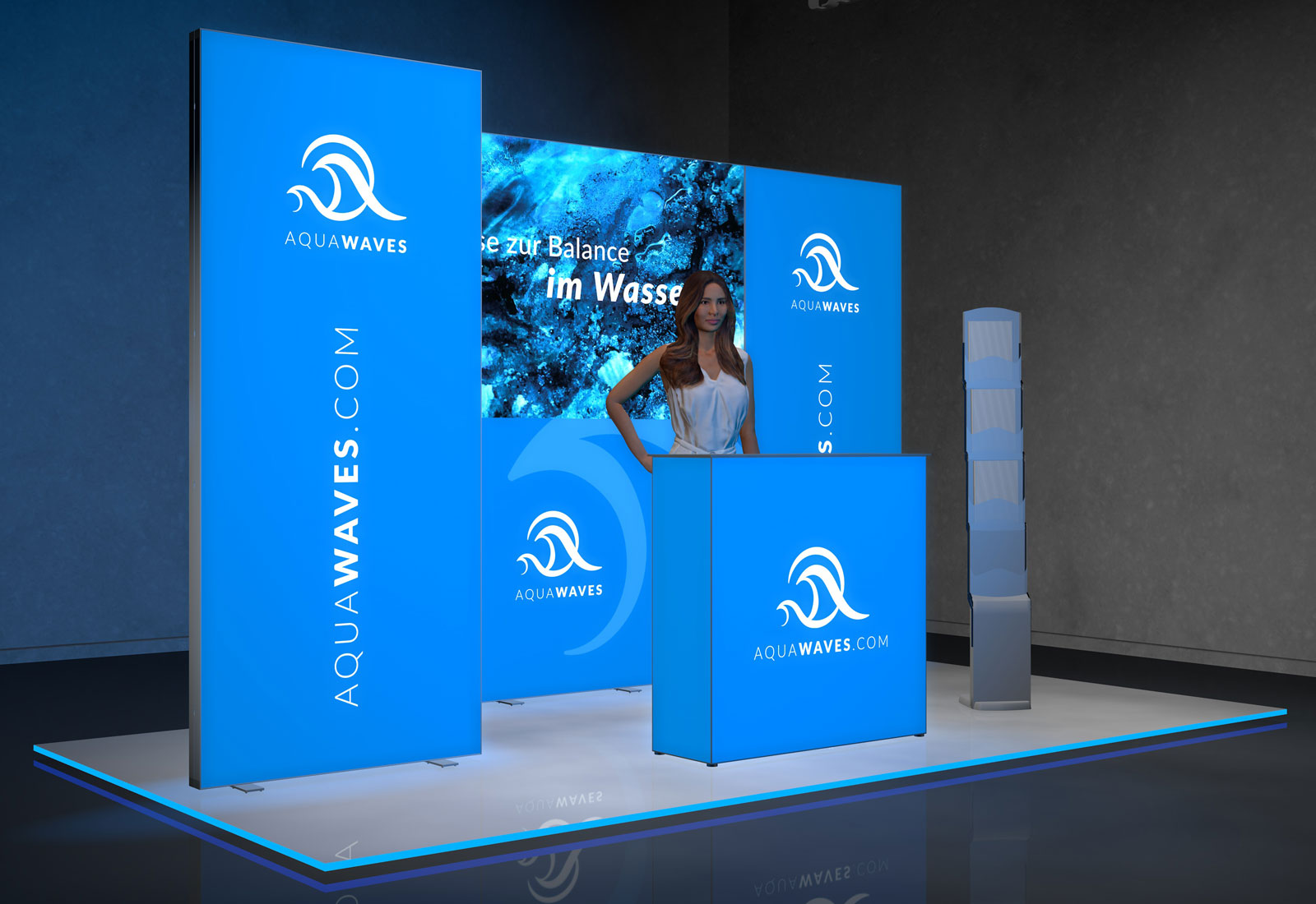 Dieser LED-Messestand ist konzipiert für 4 x 2 m Standflächen. Das ALU LightUp Leuchtwandsystem ist perfekt für Selbstaufbauer geeignet.