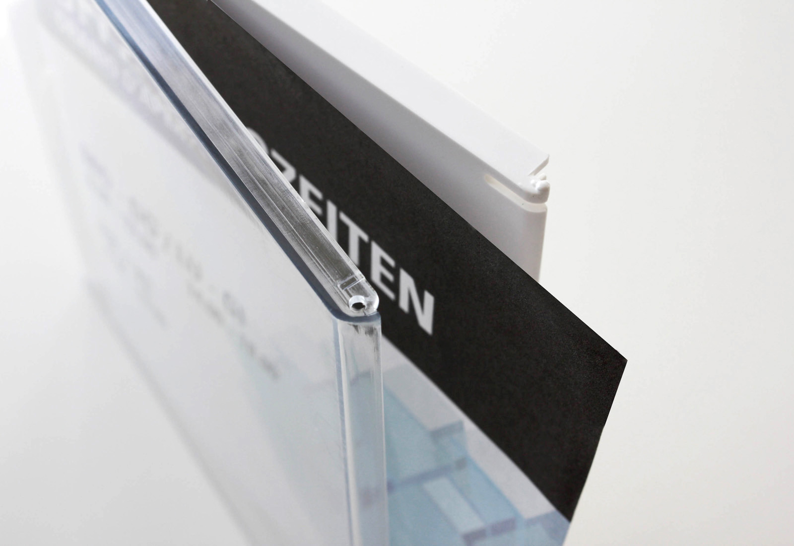 Das Türschild smartquick ist klein, praktisch und schnell montiert. smartquick besteht aus hochwertigem Polycarbonat Spritzguss lässt sich einfach und schnell an der Wand montieren. Ob mit Schraube und Dübel oder doppelseitigem Panzerband auf glatten Oberflächen – der smartquick ist überall dort im Einsatz, wo Informationen rahmenlos und staubgeschützt präsentieren werden sollen. Zum austausch öffnet sich das transparente Cover nach links oder rechts. Die Rückwand ist weiß und bildet den perfekten Hintergrund für alle eingebrachten Informationen.