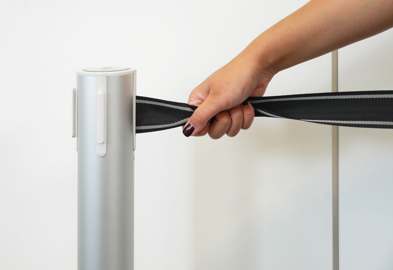 Das Absperr- und Personenleitsystem Stopper Point überzeugt durch zeitloses Design. Die Kombination der hochwertigen Pfosten mit einer stabilen Bodenplatte präsentieren sich in einem optisch ansprechenden Gesamtbild und sind in Ausführungen aus Aluminium oder schwarz lieferbar. Das besonders stapazierfähige Gurtband, das bis zu 250 cm aus der Stange herausgezogen werden kann, wird für die Absperrung zwischen den Pfosten gespannt. Es ist in den Farben schwarz, rot und blau lieferbar. Das Gurtband ist 5 cm breit und besonders knitter-resistent. Die Basis besitzt einen Durchmesser von 33 cm, die Höhe der Pfosten beträgt 97,2 cm.