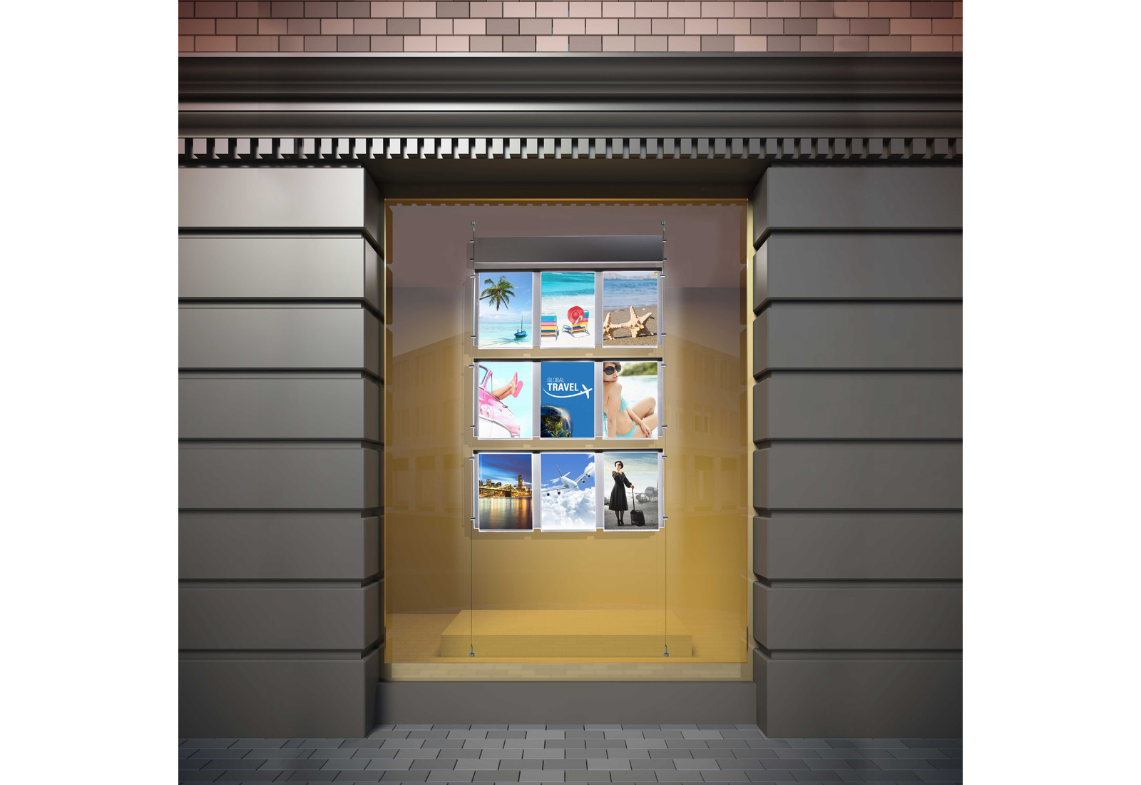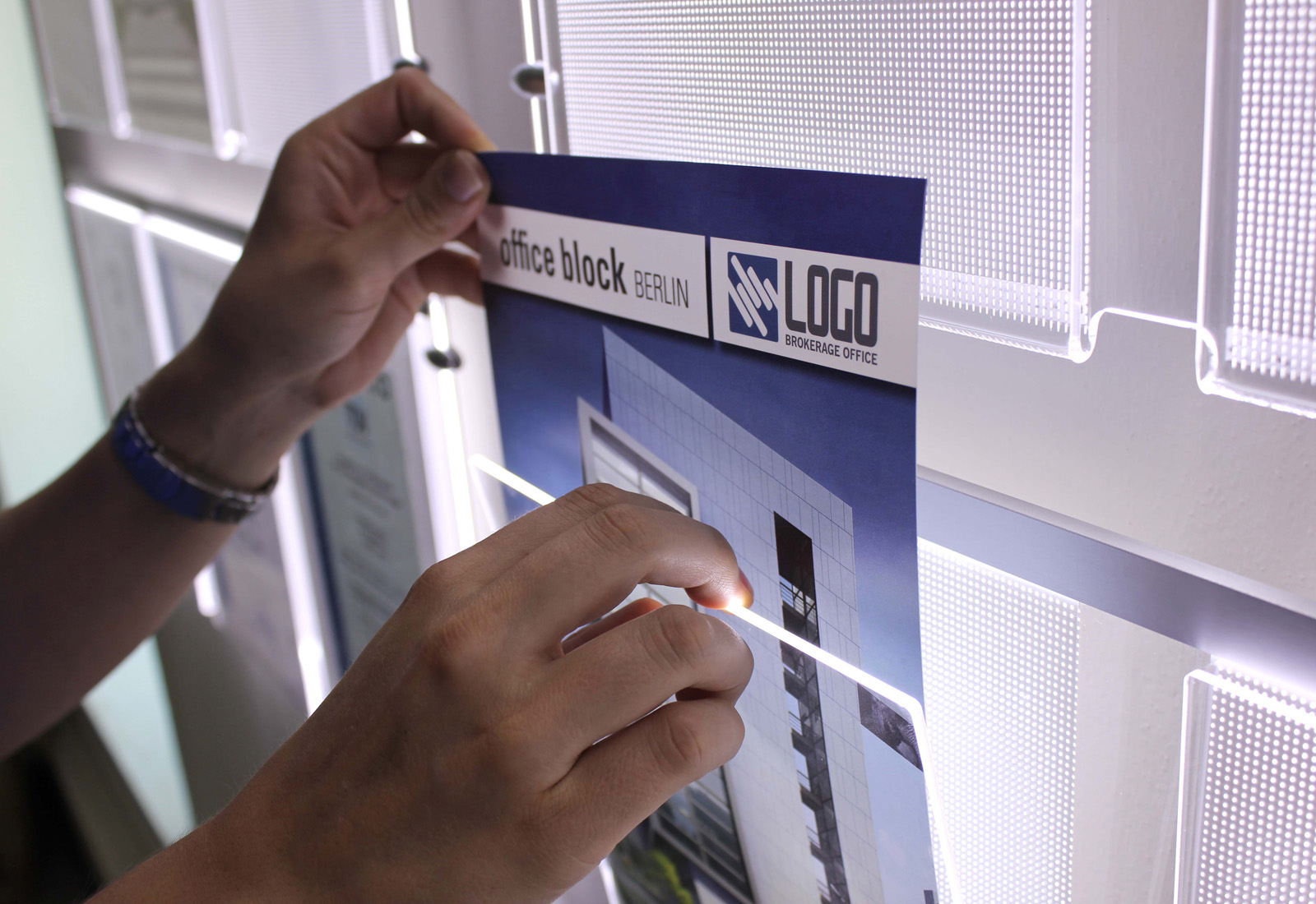 Fly Shine revolutioniert Ihre Präsentation! Die mit LED beleuchteten, einseitigen Postertaschen können einfach wandmontiert oder deckenabgehängt werden. Alle Paneele und elektrischen Bauteile sind vormontiert, sodass nur noch die Spannseile, die Transformatorbox und die Leuchtpaneele befestigt werden müssen. Flyshine Paneele sind in den Maßen DIN A4, DIN A3 und 50x70 cm erhältlich. Dank der hochwertigen LEDs und modernster Lasertechnik erstrahlen die darin präsentierten Info im perfekten Licht und wirken ästhetisch ansprechend. Der Austausch der Information ist einfach und mit der modularen Gestaltung steht einer Erweiterung des Systems nichts im Wege.